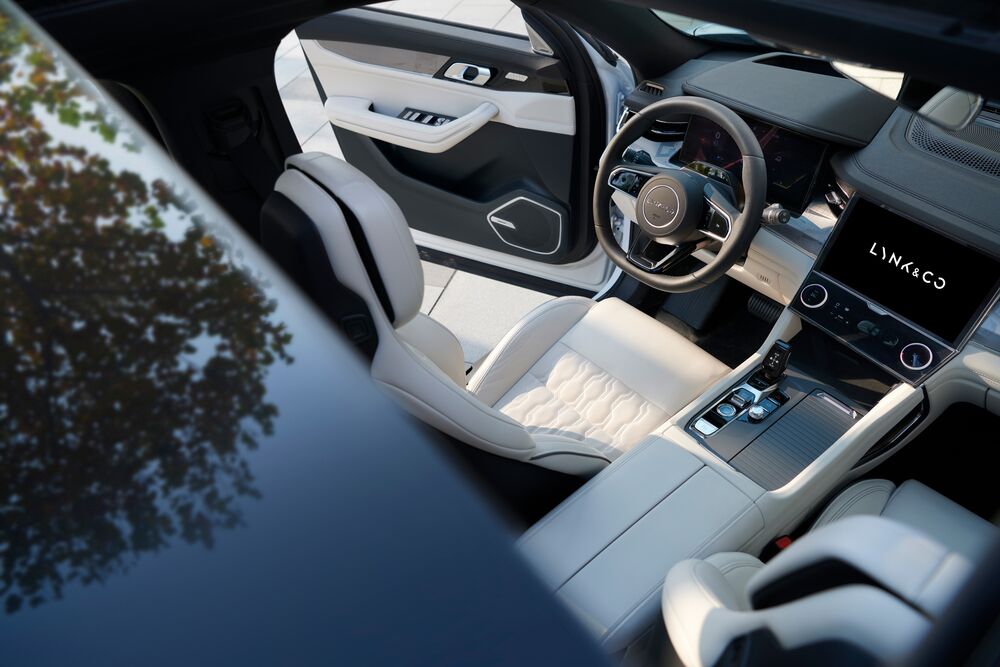 Khoang cabin của Lynk & Co 09 được hoàn thiện bằng da Nappa cao cấp, kết hợp các chi tiết ốp kim loại và gỗ, tạo cảm giác sang trọng chuẩn xe châu Âu. Xe có cấu hình 7 chỗ ngồi, hàng ghế trước chỉnh điện, nhớ vị trí, thông gió và sưởi.